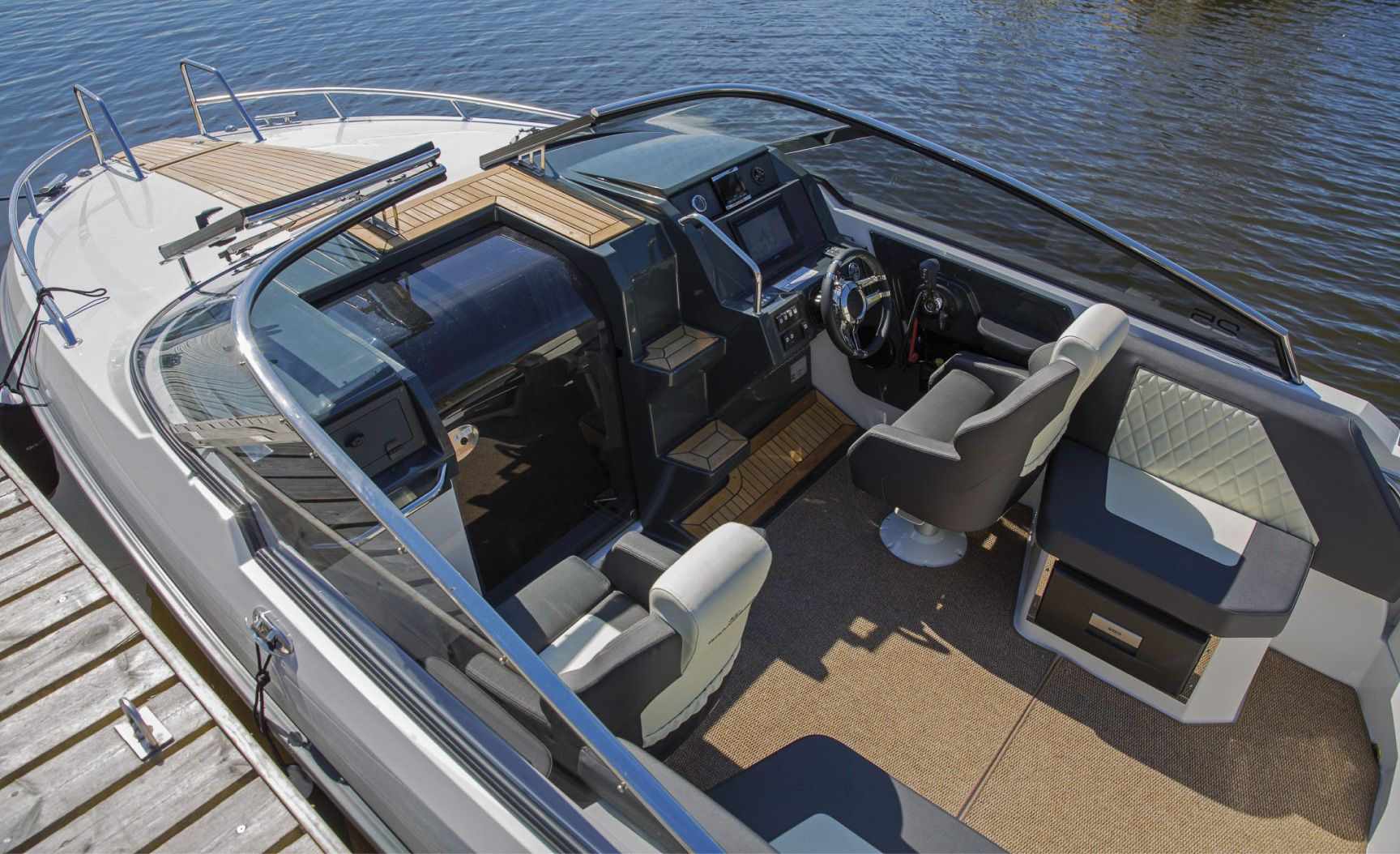 Lassen Sie das stilvolle Cockpit inklusive der Sonnenlounge bei einer gemütlichen Tagesfahrt auf sich wirken.