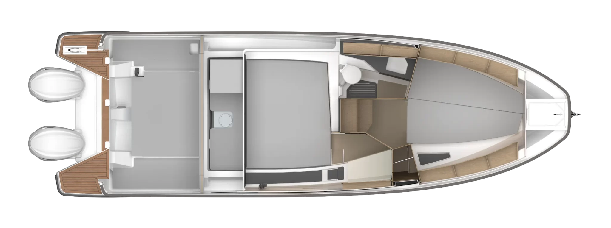 Der neue Grandezza 30 Outboard ist der perfekte Partner für Wochenendausflüge und längere Reisen. Dieser sportliche Kajütkreuzer bietet erstklassige Ausstattung und erfüllt mit seiner hochwertigen Ausstattung auch die Ansprüche anspruchsvollster Bootsfahrer.
